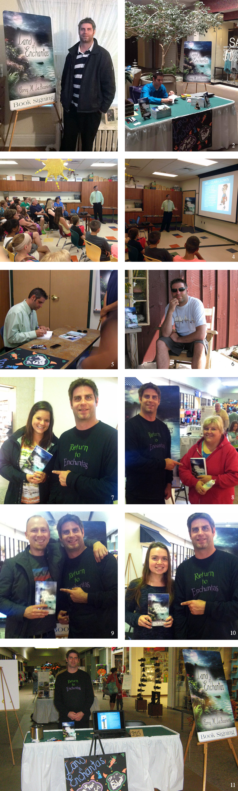 (1) Prior to LaBissoniere’s first book signing (2) July 2013 book signing in Marquette, MI (3-5) August 2013 signing at the Portage Lake District Library (6) August 2013 signing at Grandpa’s Barn in Copper Harbor (7-11) U.P. Author’s Day 2014 in Marquette, MI